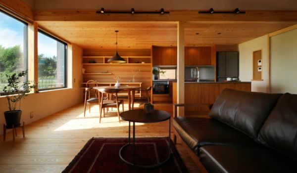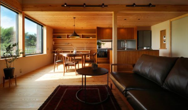 木の素材感が外の景色と融合します。