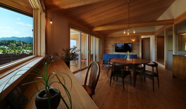 室内の板張りやモルタルの壁、真鍮の照明は木の家との相性抜群です!