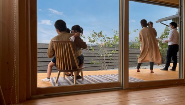 周辺環境に合わせた建物の配置計画は、リビングやテラスからのどかな風景を望むことができます。