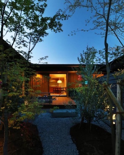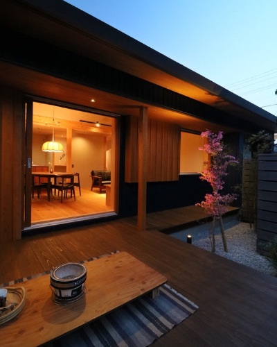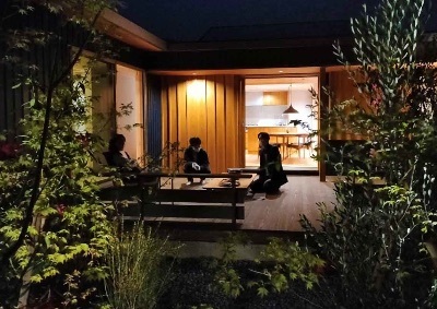 優しく照らす照明に昼とは違う顔を見せる建物と植栽。 「こんなに癒される家ですごせたら最高ですね。。」などうれしいお言葉もいただきました。