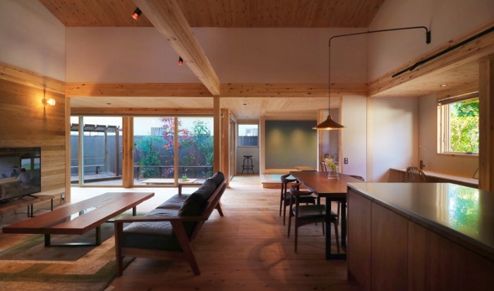 ゆっくりと腰をおろしたリビングから眺める先には、溶け込み合うようにつながるウチとソトの世界。