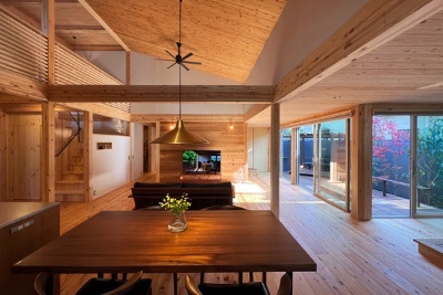 お家の中へ足を踏み入れると、リビングの上には大きく広がる吹きぬけの空間。 開放的でのんびりと過ごせる心地よい暮らしが想像出来ます。