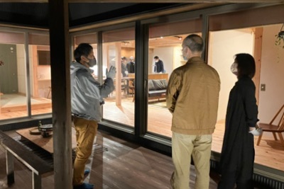 完成見学会の土曜日のよるのみ開かれる貴重なナイト見学会。 照明のバランスや実際の暮らし方を体感していだきました。
