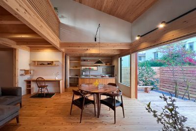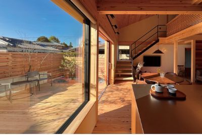 玄関土間がリビングまで続く、土間リビングの家。