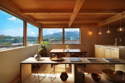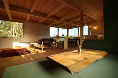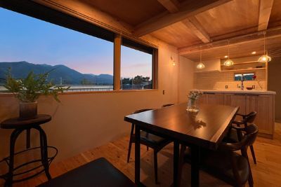 リビングが階上にある事で大きく切り取られた窓からパノラマ状にひろがる景色を堪能できます。