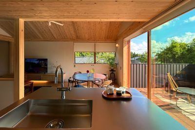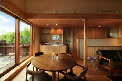 自然と腰をおろしたくなる木の家。