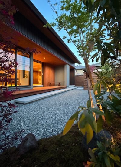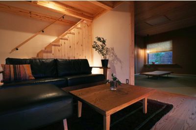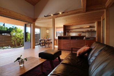 ソファに座って広がりのある空間を体感する テラスに腰掛けて、近くの緑を感じながら遠くの緑も眺める 和室の落ち着き感...