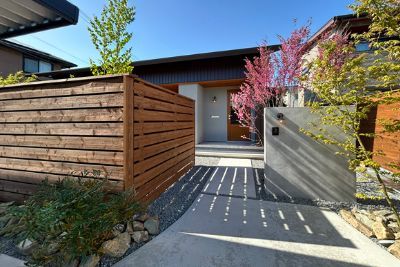 ウッドフェンスに囲われた落ち着きのあるウッドテラス。