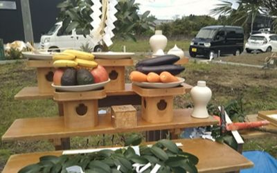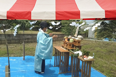 造成工事を無事に終えて、6月吉日 地鎮祭を執り行いました。