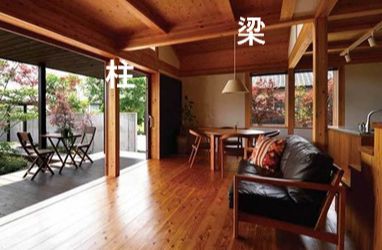 フォレストの家の構造の柱や梁は、化粧として表面に見えてきます。