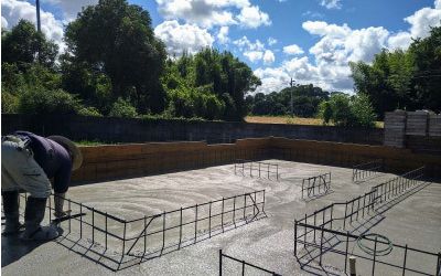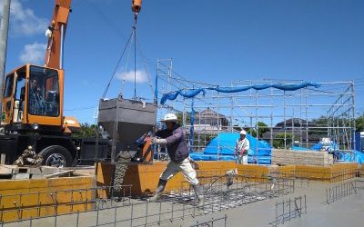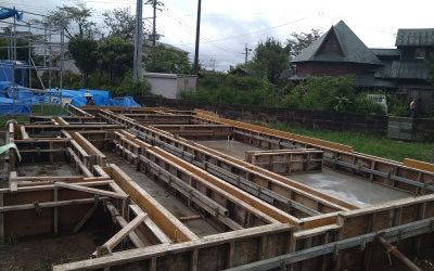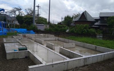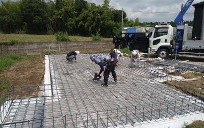 第三者機関によるお墨付きをいただいた後は、さっそく生コンクリート打設です!