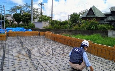 配筋後は社内での検査とは別に、第三者機関JIOによる配筋検査も行われました。