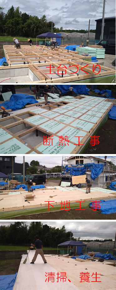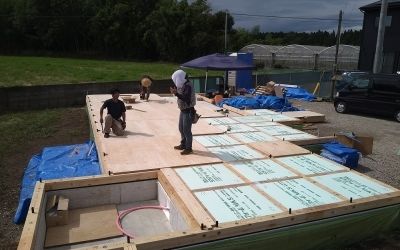 お昼休憩後は、床断熱を施工し床パネルを設置しました。
