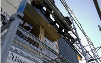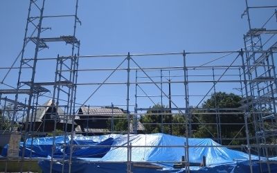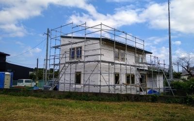 台風シーズンのこの時期は天候に左右させる外部作業を優先し、雨仕舞を中心に工事を進めますが、これでひと安心です!