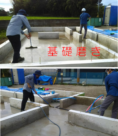 基礎完成後に基礎内部を丸ごと水洗い!見えなくなる所にも磨きの精神で、