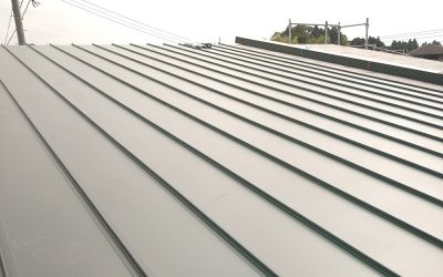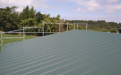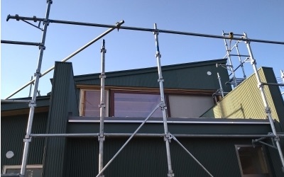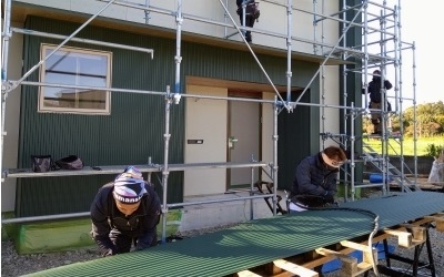 建物の最上部ではガルバリウム鋼板材による屋根工事が行われました。