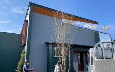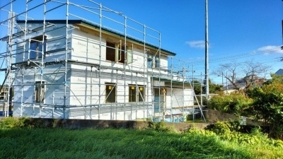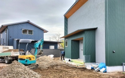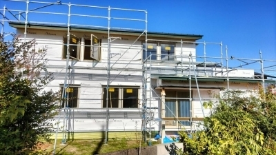 この後、塗り壁と外部塗装を仕上げて建物の雰囲気は絶妙に変化していきます。