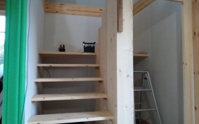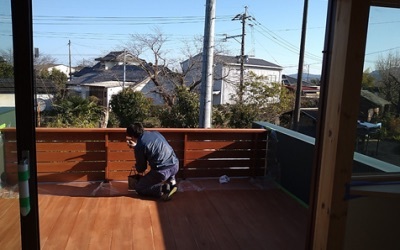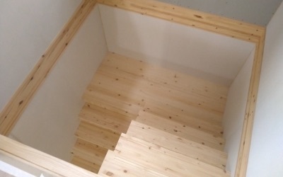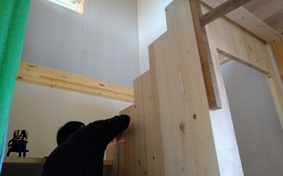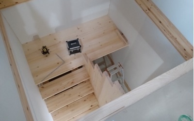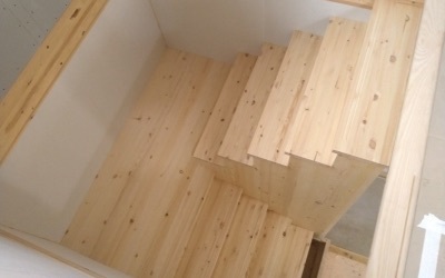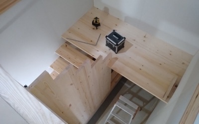 浮造り仕上げの床施工~手造りの階段施工の工程へと移ります。