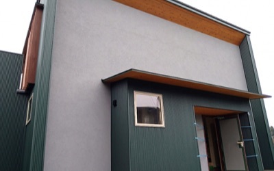 Air living の外壁はガルバリウム鋼板と塗り壁を組み合わせて仕上げます。