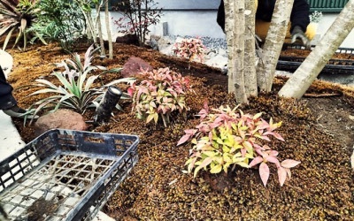 1本1本の木々を吟味し選んできて、イメージの位置へと配置していきます。