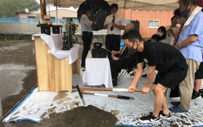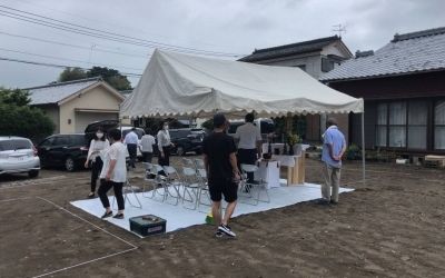 8月建築吉日、解体工事の終わったtea treeの地鎮祭を執り行いました。