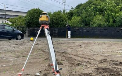 5つのポイントを調査した後、最後に敷地全体の高低差を計測して地盤調査は終了です。