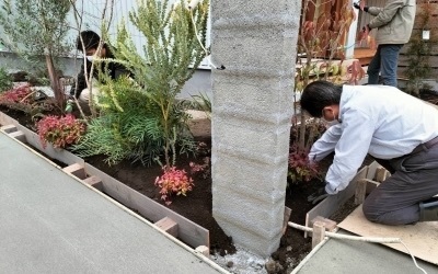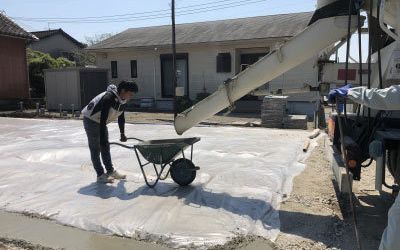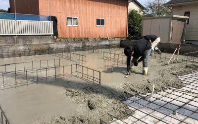 バイブレーターを使用して気泡を出しコンクリートの強度を高めます。