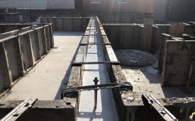 そしてレベラーと呼ばれるモルタル材を流し込み、天端を水平に保ちます。