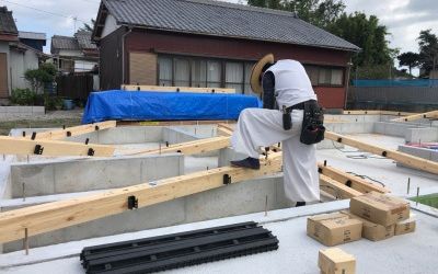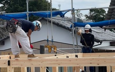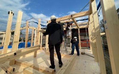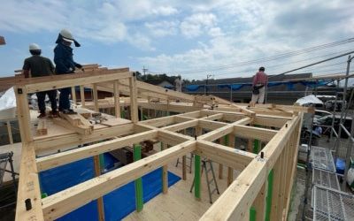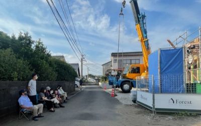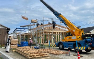 9月吉日、『tea tree』の現場にて建て方工事が行われました。