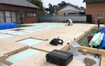 検査後には型枠を設置して、底盤コンクリートを打設します。