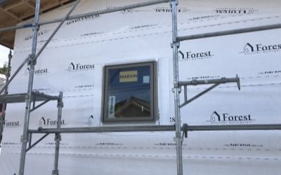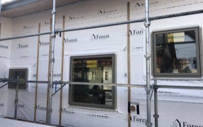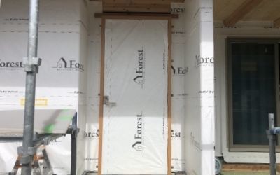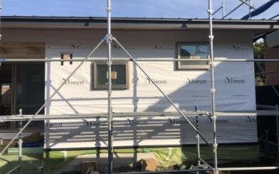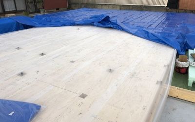 最後にブルーシートで建物全体を丁寧に包み、建て方工事完了です。