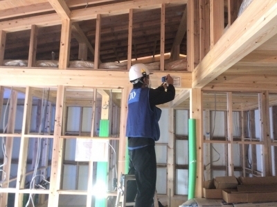 屋根工事が終わると、第三者機関により躯体検査を受けました。