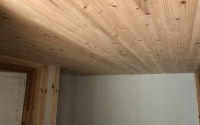 ↑天井材は張る前に少し乾燥させるのがポイント(-ω☆)キラリ