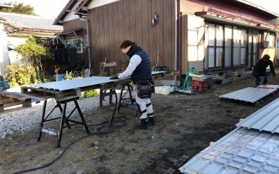 建築板金を営まれていた往時に思いを馳せつつ、解体工事に取り組みます。