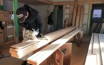 大工さんにより繊細な加工を行い、一枚一枚丁寧に施工していきます。