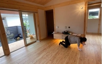 きれいな外壁はさらにきれいに、木目が美しい浮造りの床はさらに美しく。