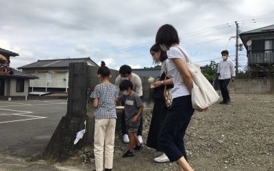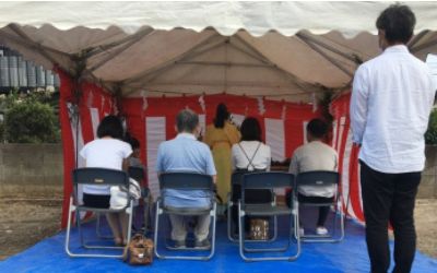 最後にご家族で四方を祓い清め、工事の安全を祈念し地鎮祭を終えました。