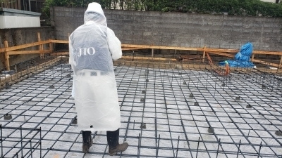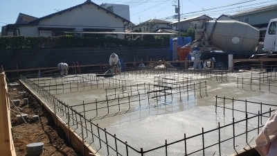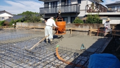 コンクリート工事は底盤部分・立ち上がり部分・デッキ下、玄関部分の打ち増しで計3回の打設を行います。