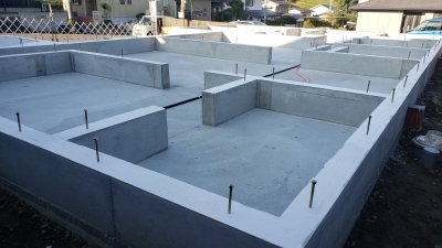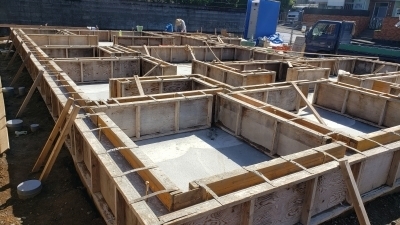 乾燥を待ち、立ち上がりの型枠を設置したら2回目の打設を行います。