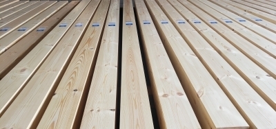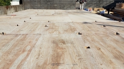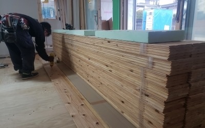 その上から床パネルを敷き込み規定のピッチで釘留め。