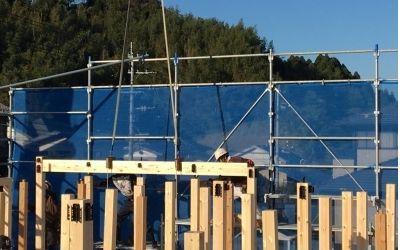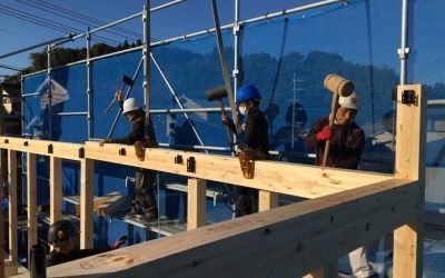 このあと構造材の搬入・仮設の足場も組み万全な体制が整いました!