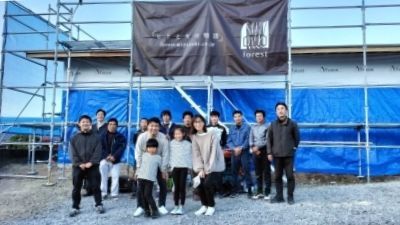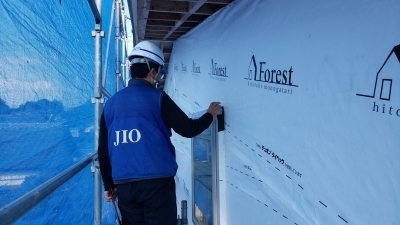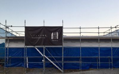 建物全体を厚手のシートで隙間なく包み込み建て方の全工程完了です!!