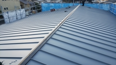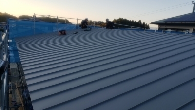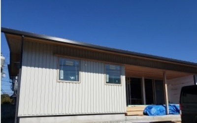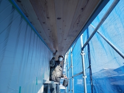 ガルバ施工後、軒天塗装・防水処理が完了した「simple lile」の現場。