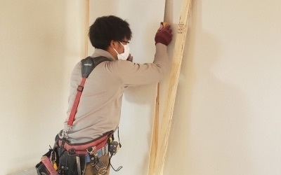 施工はサッシなどの形に合わせ細かい加工から行います。