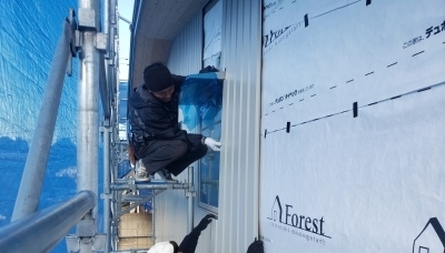 「simple life」の現場ではいよいよ外部の仕上げ工事が行われました。
