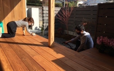 ウチ・ソトの磨きと共にウッドフェンスやデッキ、設備機器など隅々まで全集中してスタッフ自ら丁寧にチェックを重ねていきます。