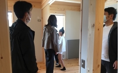 リビングではこの柱をこの向きで・・・などお家の中をイメージし歩き回ります。