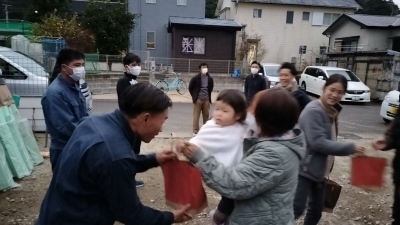建て方完了後Sちゃんより職人さんへサプライズプレゼント❤