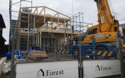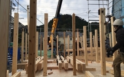 柱や梁がそのままの形で表れるフォレストの家造り、繊細かつ丁寧に組み上げられていきます。
