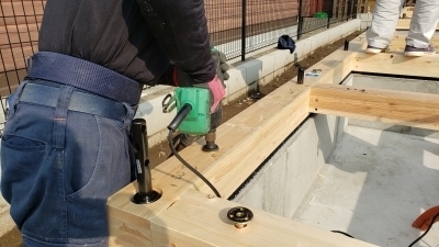 ここで基礎と土台ががっちりと緊結されます。